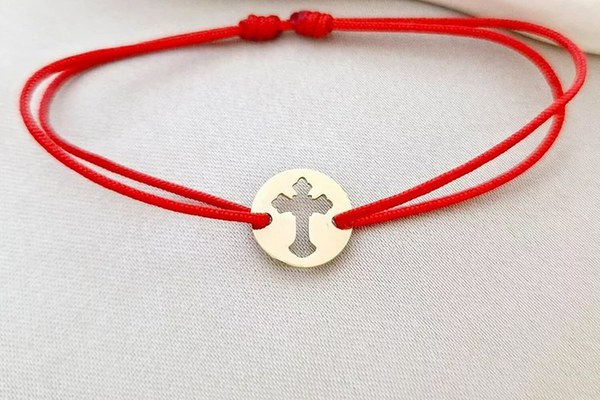Bratara banut - Cruce decupata - Argint 925 placat cu Aur Galben 18K - snur reglabil