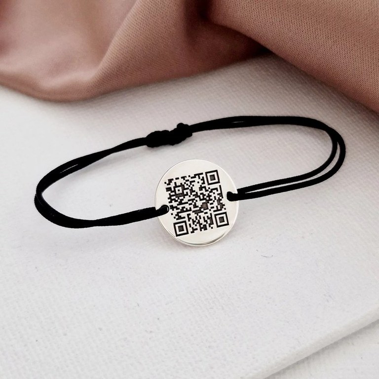 Bratara banut personalizata cu QR code - Argint 925 - snur reglabil divers colorat