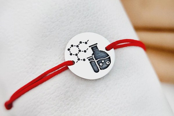 Bratara banut personalizata - simbol Chimie - Argint 925, snur reglabil diverse culori