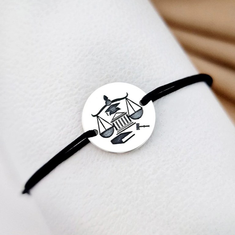 Bratara banut personalizata - simbol Justitie - Argint 925, snur reglabil diverse culori