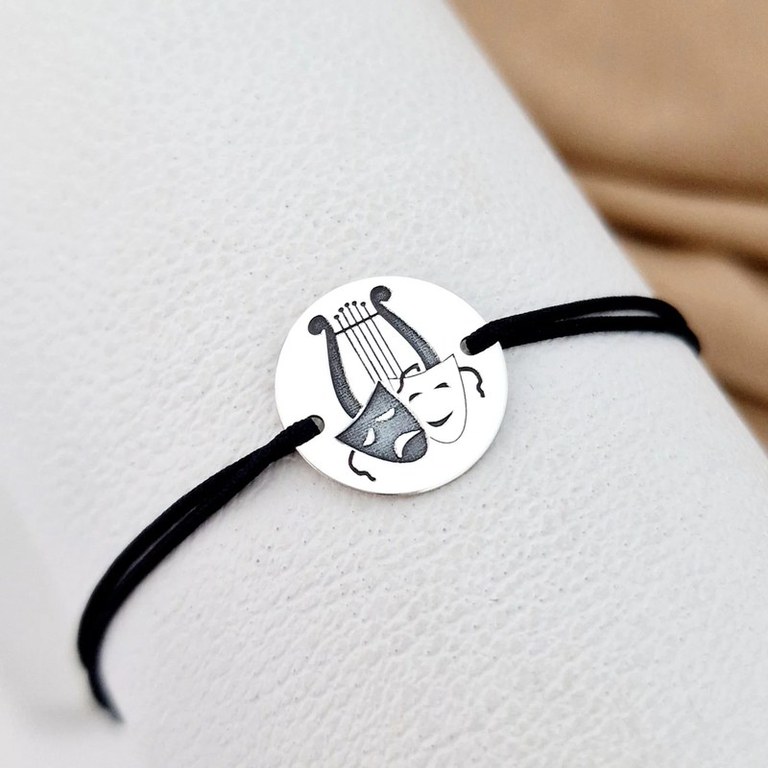 Bratara banut personalizata - simbol Teatru - Argint 925, snur reglabil diverse culori