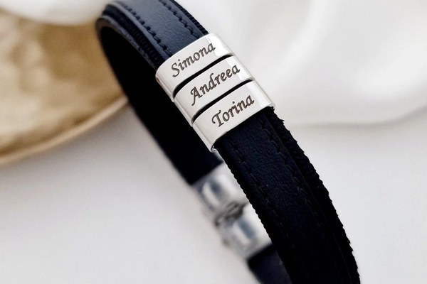 Bratara barbateasca Classic Elegance - 3 Elemente inox argintiu - Piele neagra cu inchizatoare clips din inox