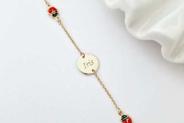 Bratara Chic Baby - Banut personalizat si Buburuze cu email rosu - Lantisor ajustabil - Aur Galben 9K