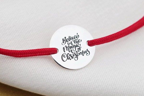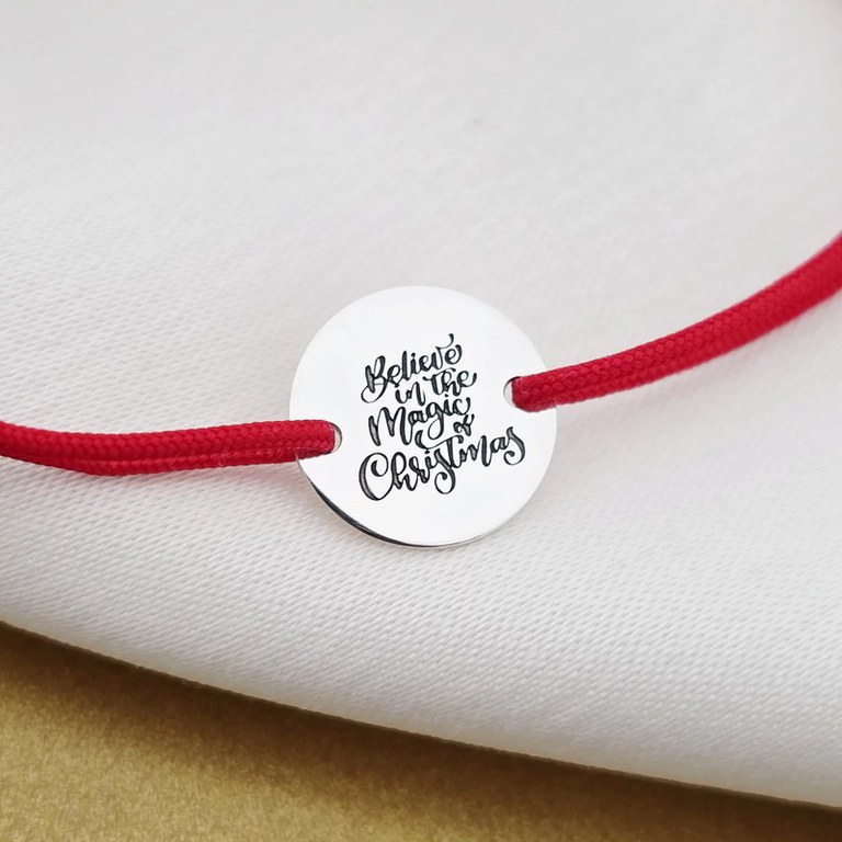La ce te gandesti atunci cand se apropie Craciunul? La brad, la colinzi, la Mos si la cadouri, multe, multe cadouri! Perioada Craciunului este iubire pentru ca redescoperim sensibilitatea din inimile noastre si oferim cu drag mici atentii celor dragi. Stim cat de important este sa alegeti cadouri perfecte pentru cei dragi, asa ca noi am creat o linie intreaga de bratari personalizate cu elemente specifice sarbatorilor de iarna pe care sa le daruiti in cea mai magica noapte a anului. Craciunul acesta alege cadoul cel mai chic! Gramaj aproximativ ARGINT 925: 0.48 grame Aceasta bijuterie personalizata este realizata de la zero pentru fiecare comanda in parte. Dupa plasarea si confirmarea comenzii incepe procesul ei de creatie: Realizare Design -> Taiere/Personalizare -> Finisare manuala -> Polish Final -> Ambalare -> Livrare! Datorita procesului de productie si a personalizarii bijuteriei dupa propria dorinta gramajul final al produsului poate fi diferit. Din acest motiv pe site este afisat gramajul obtinut prin catarirea produsului realizat in pozele de prezentare. Pretul produsului include pe langa costul gramului de Argint 925 si tot procesul de mai sus, necesar pentru realizarea unui produs cu adevarat special pentru tine. Toate produsele din Argint 925 comercializate de Chic Bijoux sunt marcate cu titlul Argintului· 925 · DESPRE PRODUS: Pandantul bratarii este creat din Argint 925 in atelierul nostru prin gravare si taiere laser de ultima generatie Bratara este finisata cu maiestrie de bijutierii chic Banutul are diametrul de 10 mm Acesta este atasat unui snur de matase vegetala, marime reglabila.