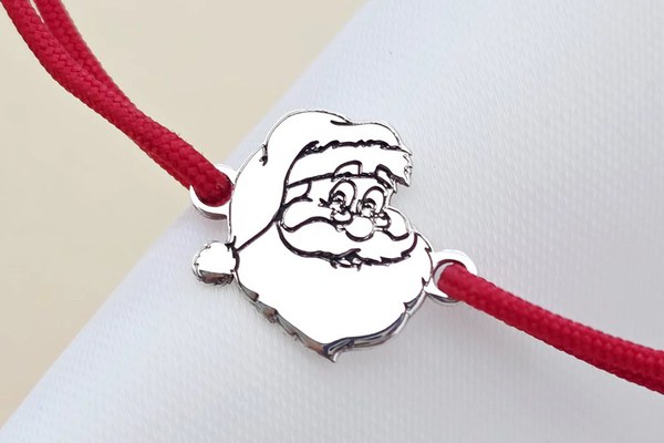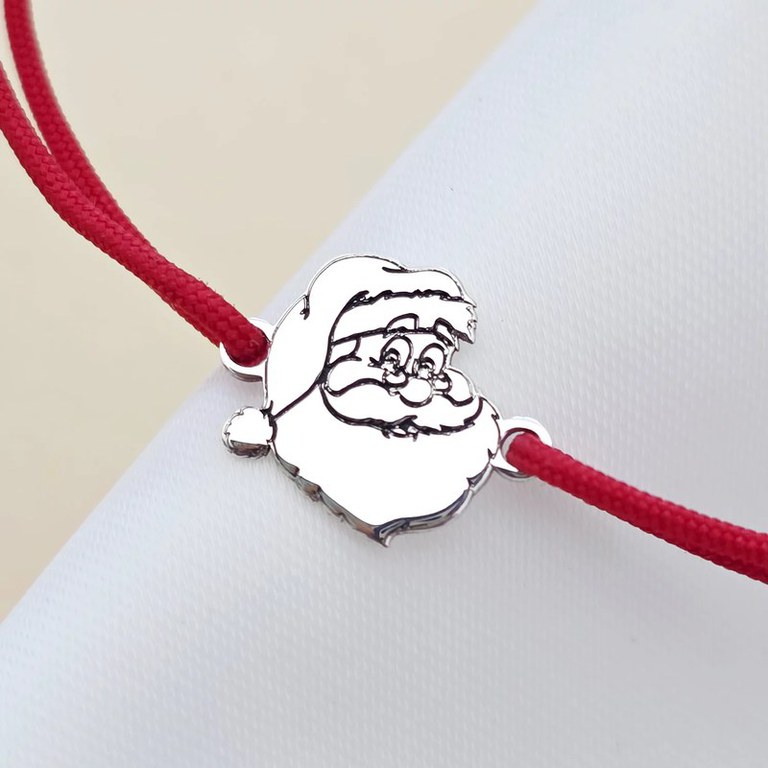 Bratara Craciun - Mos Craciun cu plete dalbe - Argint 925, snur reglabil diverse culori