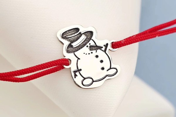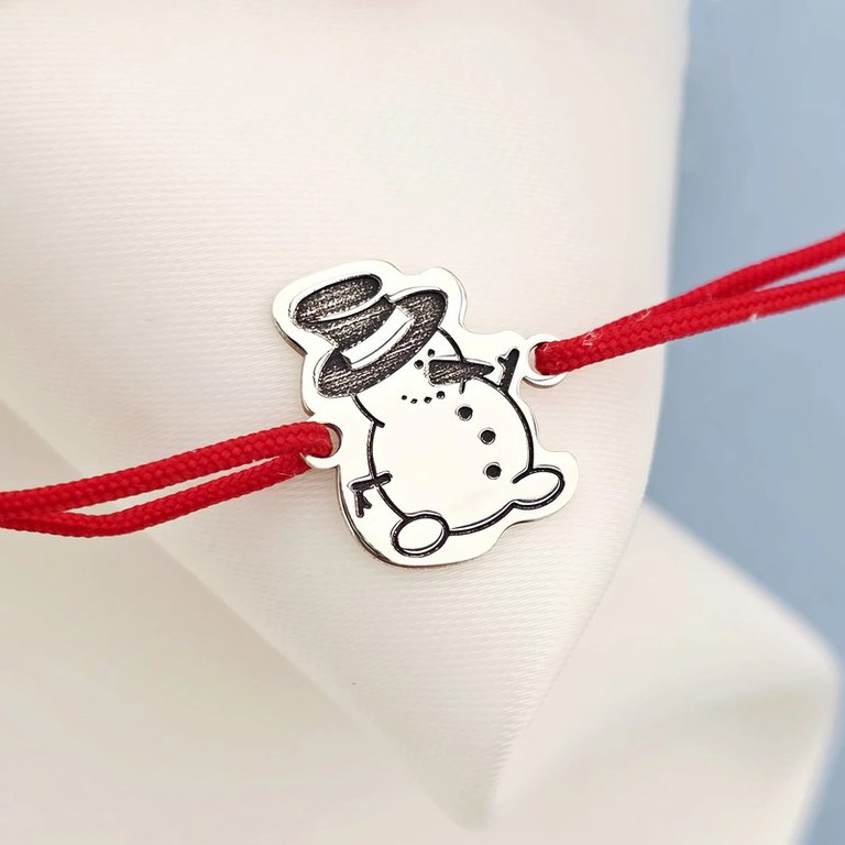 Bratara Craciun - Omul de zapada - Argint 925, snur reglabil diverse culori