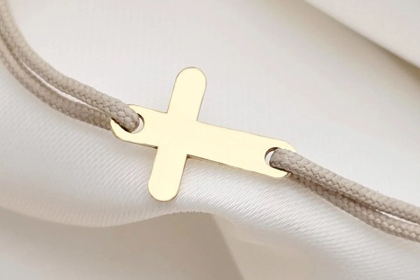 Crucea este unul din cele patru simboluri fundamentale alaturi de cerc, centru si patrat. Aceasta simbolizeaza pamantul, soarele, cele patru puncte cardinale, fiind totodata asemanata cu simbolul omului deschizandu-si bratele si imbratisandu-l de Dumnezeu. Un cadou deosebit! DESPRE PRODUS: Pandantul este creat din Argint 925 placat cu Aur Galben 18K. Acesta este personalizat un nume la alegere. Dimensiunea pandantului este de 12x9 mm. Bratara este creata dintr-un snur din matase vegetala, marime reglabila, potrivit pe orice incheietura. Bijuteria va ajunge la tine intr-un saculet elegant din catifea, impreuna cu certificatul de calitate ce atesta autenticitatea materialelor folosite. Gramaj aproximativ ARGINT 925: 0,26 grame Aceasta bijuterie personalizata este realizata de la zero pentru fiecare comanda in parte. Dupa plasarea si confirmarea comenzii incepe procesul ei de creatie: Realizare Design -> Taiere/Personalizare -> Finisare manuala -> Polish Final -> Ambalare -> Livrare! Datorita procesului de productie si a personalizarii bijuteriei dupa propria dorinta gramajul final al produsului poate fi diferit. Din acest motiv pe site este afisat gramajul obtinut prin catarirea produsului realizat in pozele de prezentare. Pretul produsului include pe langa costul gramului de Argint 925 placat cu Aur Galben 18K si tot procesul de mai sus, necesar pentru realizarea unui produs cu adevarat special pentru tine. Toate produsele din Argint 925 comercializate de Chic Bijoux sunt marcate cu titlul Argintului· 925 · Dupa plasarea comenzii veti fi contactat de o colega din echipa Chic Bijoux pentru toate detaliile necesare personalizari.