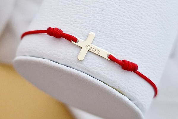 Bratara Cruciulita de 15 mm - Nume gravat - Aur Galben 9K - Snur reglabil de diverse culori