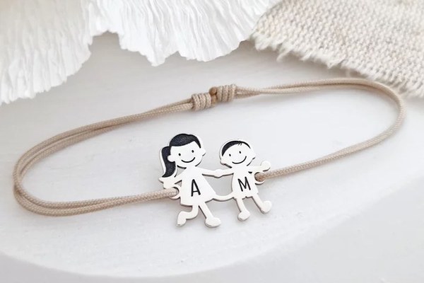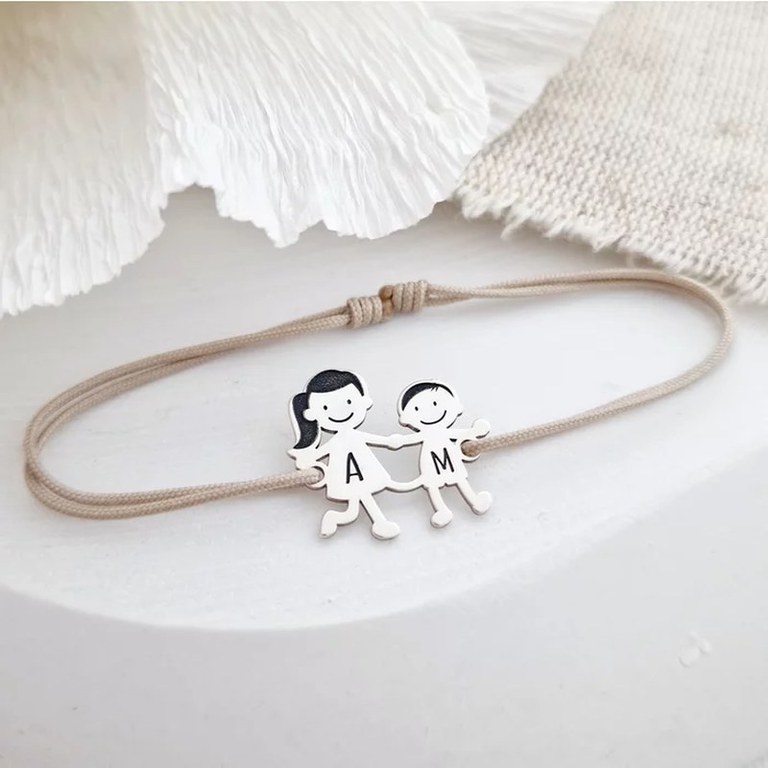 Bratara Familie - 2 Membri - pandant Argint 925, snur matase vegetala reglabil