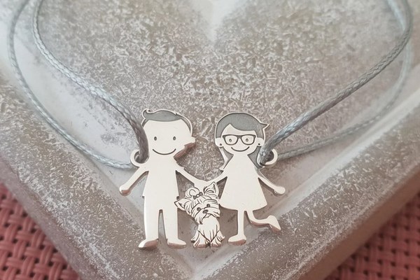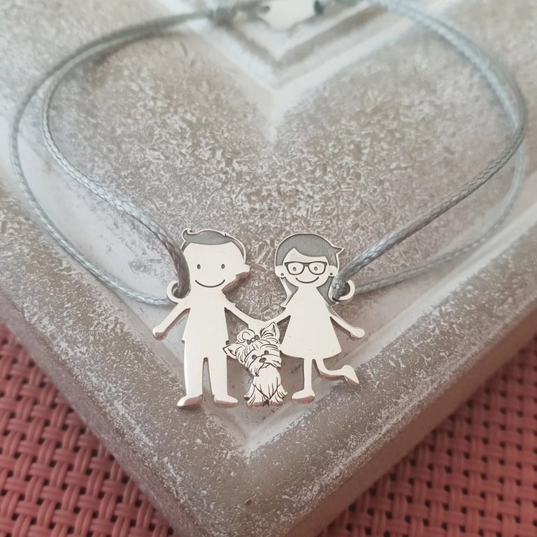 Bratara Familie - 3 Membri cu Yorkshire Terrier - Argint 925, snur reglabil
