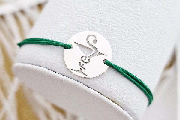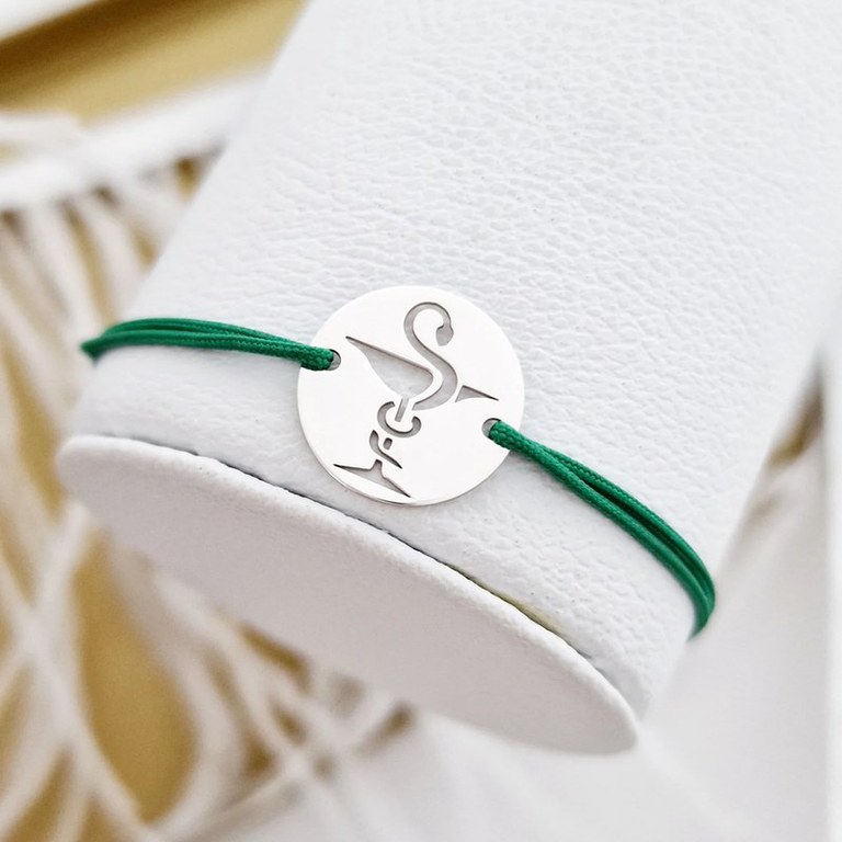 Simbolul farmaciei este reprezentat de o cupa cu un șarpe. Semnul este cunoscut si sub numele de Vasul Hygeea , provenind de la fiica lui Asclepius, Hygeia, zeița sănătății, care este portretizată cu un șarpe într-o mână și o oală în cealaltă. Bratara poate fi un cadou personalizat pentru farmacistul/farmacista din viata ta. Gramaj aproximativ ARGINT 925:0.78 grame Aceasta bijuterie personalizata este realizata de la zero pentru fiecare comanda in parte. Dupa plasarea si confirmarea comenzii incepe procesul ei de creatie: Realizare Design -> Taiere/Personalizare -> Finisare manuala -> Polish Final -> Ambalare -> Livrare! Datorita procesului de productie si a personalizarii bijuteriei dupa propria dorinta gramajul final al produsului poate fi diferit. Din acest motiv pe site este afisat gramajul obtinut prin catarirea produsului realizat in pozele de prezentare. Pretul produsului include pe langa costul gramului de Argint 925 si tot procesul de mai sus, necesar pentru realizarea unui produs cu adevarat special pentru tine. Toate produsele din Argint 925 comercializate de Chic Bijoux sunt marcate cu titlul Argintului · 925 · DESPRE PRODUS: Banutul este creat din Argint 925. Dimensiunea banutului este de 15 mm. Bratara este creata dintr-un snur din matase vegetala, marime reglabila, potrivit pe orice incheietura. Bijuteria va ajunge la tine intr-un saculet elegant Chic Bjoux gata de a fi daruita, impreuna cu certificatul de garantie, care atesta autenticitatea si caracteristicile metalului pretios. Dupa plasarea comenzii veti fi contactat de o colega din echipa Chic Bijoux pentru toate detaliile necesare personaliza