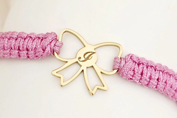 Bratara fundita simbolizeaza o legatura de iubire bine stransa, ce va adauga o pata de culoare feminina la incheietura mainii. Piesa dulce este cadoul perfect pentru o domnisoara chic. Fundita este personalizata cu o initiala, astfel ca, bratara prinde viata si personalitate. DESPRE PRODUS: Bijuteria este creata din Argint 925 placat cu Aur Galben 18K. Dimensiunea piesei este de 10x12 mm. Gramaj: 0.3 grame Bratara este creata dintr-un snur din matase vegetala impletit, marime reglabila, potrivit pe orice incheietura (snurul din imagine are culoarea bordo). Bijuteria va ajunge la in ambalaj cadou Chic Bjoux gata de a fi daruit, impreuna cu certificatul de garantie, care atesta autenticitatea si caracteristicile metalului pretios. Dupa plasarea comenzii veti fi contactat de o colega din echipa Chic Bijoux pentru toate detaliile necesare personalizarii produsului.
