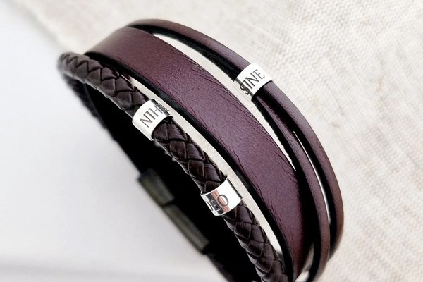 DESPRE PRODUS: Bratara este creata pe marimi, prin urmare te rugam sa ne spui in casuta Marime bratara care este circumferinta incheieturii in cm. Cele trei modele cilindrice create din Argint 925 pot fi gravate fiecare cu un nume sau un cuvant special. Bratara este creata din piele naturala. 1 strat de piele de 10 mm,3 straturi de piele simpla de 3 mm si 1 strat de piele impletita de 5 mm Sistemul de inchidere a bratarii este cu inchizatoare din inox de culoare neagra . Daca nu stii care e marimea ta sau a persoanei careia doresti sa ii faci cadou bratara, articolul Cum sa masori dimensiunea incheieturii? de pe blogul Chic Bijoux iti vine in ajutor. Gramaj aproximativ ARGINT 925: 2,6 grame Aceasta bijuterie personalizata este realizata de la zero pentru fiecare comanda in parte. Dupa plasarea si confirmarea comenzii incepe procesul ei de creatie: Realizare Design -> Taiere/Personalizare -> Finisare manuala -> Polish Final -> Ambalare -> Livrare! Datorita procesului de productie si a personalizarii bijuteriei dupa propria dorinta gramajul final al produsului poate fi diferit. Din acest motiv pe site este afisat gramajul obtinut prin catarirea produsului realizat in pozele de prezentare. Pretul produsului include pe langa costul gramului de Argint 925 si tot procesul de mai sus, necesar pentru realizarea unui produs cu adevarat special pentru tine. Toate produsele din Argint 925 comercializate de Chic Bijoux sunt marcate cu titlul Argintului· 925 · RECOMANDARI: Nu scufundati bratara in lichide sau substante de curatare: pielea se poate decolora sau decoji, iar bijuteriile placate se deterioriaza si isi pot chiar schimba culoarea. Contactul zilnic cu apa (bai) sau cu produse chimice (spray-uri, detergenti, inalbitor, clor, diluanti etc.) pot de asemena sa afecteze bijuteria, existand riscul de a se desface si/sau de a se decolora. Pentru ca bratara sa vi se potriveasca te rugam sa ne transmiti marimea. Dupa plasarea comenzii veti fi contactat de o colega din echipa Chic Bijoux pentru toate detaliile necesare personalizarii produsului. Bijuteria va ajunge la tine intr-un saculet elegant din catifea, impreuna cu certificatul de calitate ce atesta autenticitatea materialelor folosite.