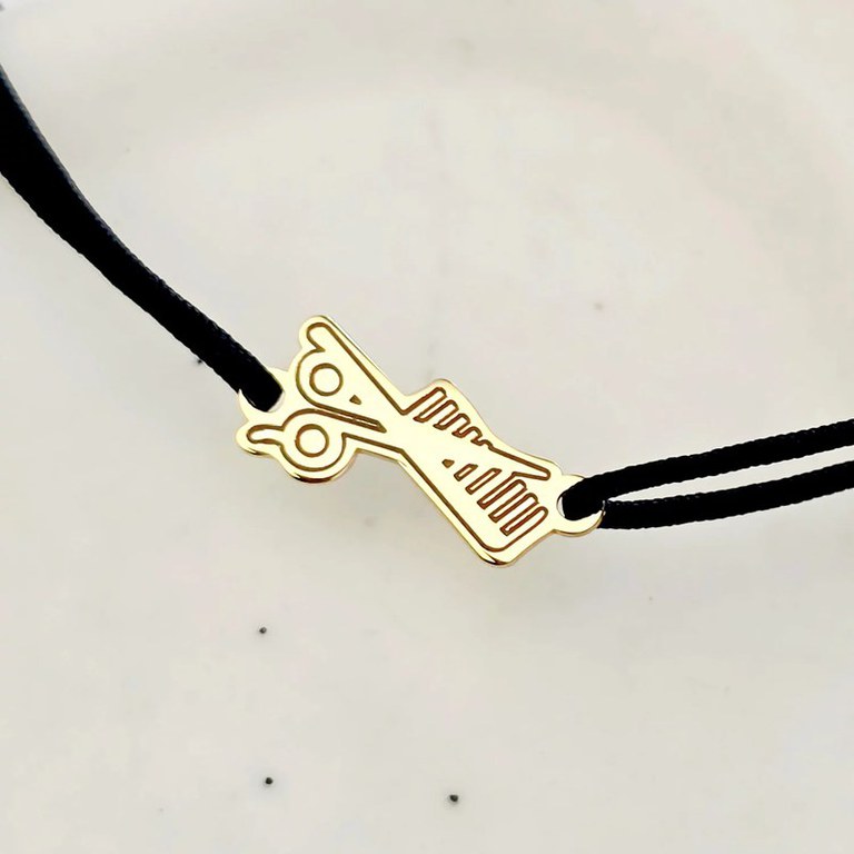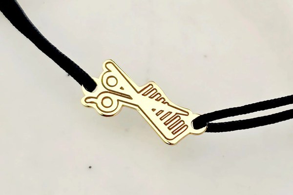 Viața e mai frumoasă când găsești haistylist-ul potrivit! O bratara personalizata creata din Argint 925 placat cu Aur Galben 18K, avand dimensiunea de 1,3x0,5 cm si fiind atasata unui snur de matase vegetala, marime reglabila. Un cadou deosebit hairstylistului tau! Gramaj aproximativ ARGINT 925:0.3 grame Aceasta bijuterie personalizata este realizata de la zero pentru fiecare comanda in parte. Dupa plasarea si confirmarea comenzii incepe procesul ei de creatie: Realizare Design -> Taiere/Personalizare -> Finisare manuala -> Polish Final -> Ambalare -> Livrare! Datorita procesului de productie si a personalizarii bijuteriei dupa propria dorinta gramajul final al produsului poate fi diferit. Din acest motiv pe site este afisat gramajul obtinut prin catarirea produsului realizat in pozele de prezentare. Pretul produsului include pe langa costul gramului de Argint 925 placat cu Aur Galben 18K si tot procesul de mai sus, necesar pentru realizarea unui produs cu adevarat special pentru tine. Toate produsele din Argint 925 comercializate de Chic Bijoux sunt marcate cu titlul Argintului· 925 ·