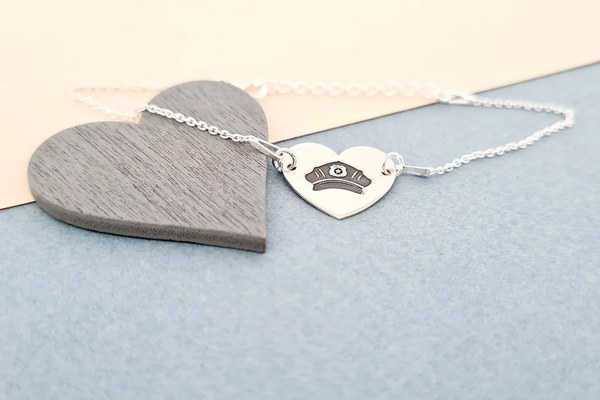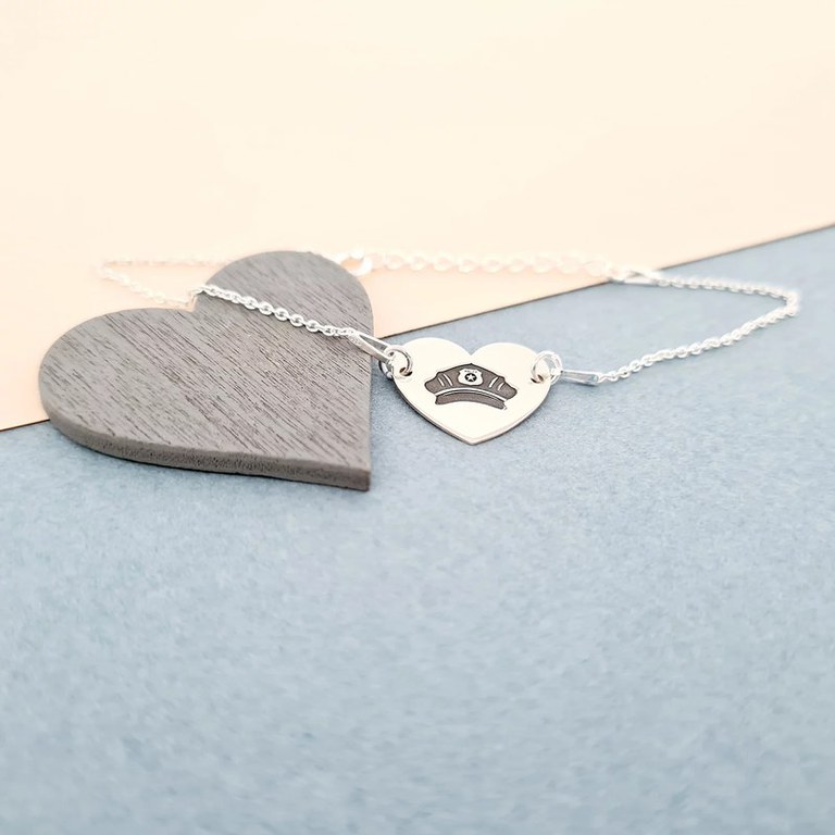Bratara Inima cu cascheta de politist gravata - Argint 925, lantisor