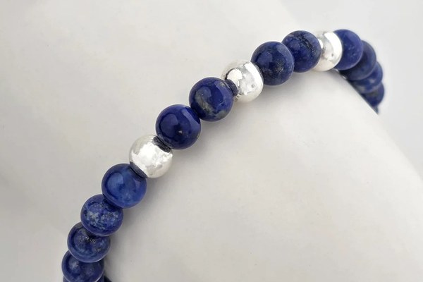 Bratara Intelepciune - Pietre Lapis Lazuli de 6 mm - Bilute din Argint 925 - Snur elastic