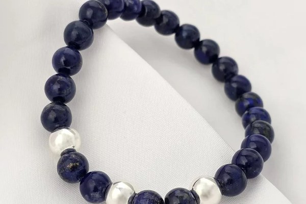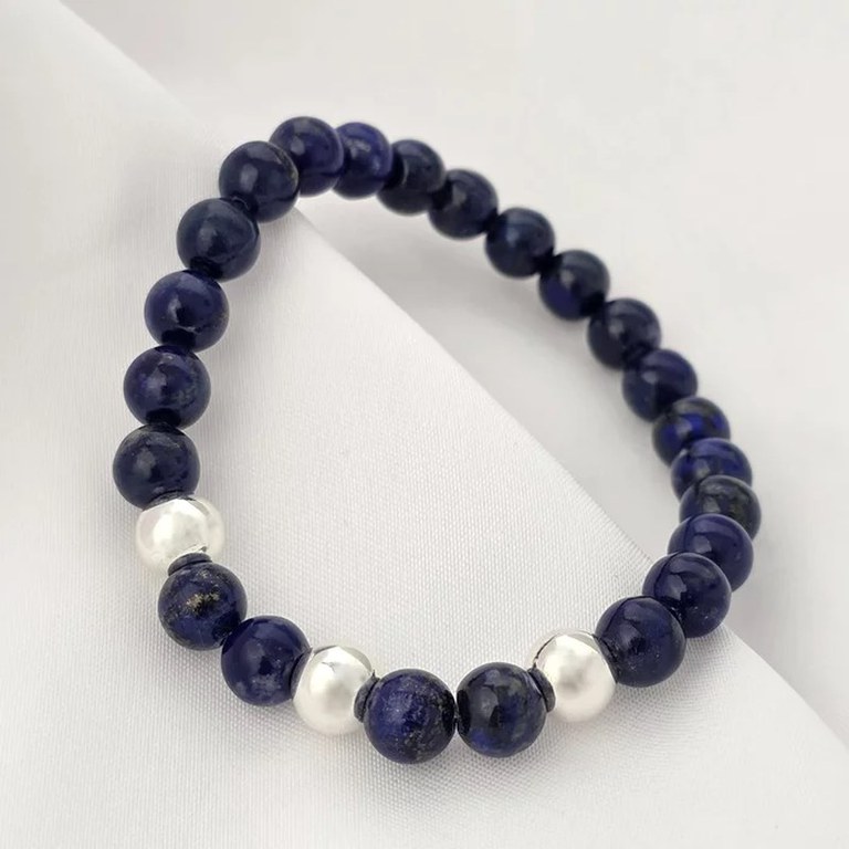 Bratara Intelepciune - Pietre Lapis Lazuli de 8 mm - Bilute din Argint 925 - Snur elastic