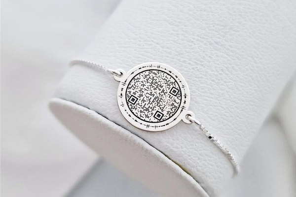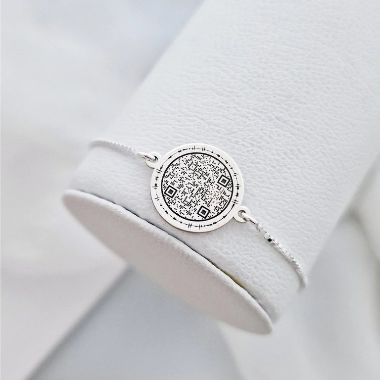 Bratara Iubire transmisa - Banut 16 mm cu amprenta vocala si Qr Code - Argint 925 - Lant glisant
