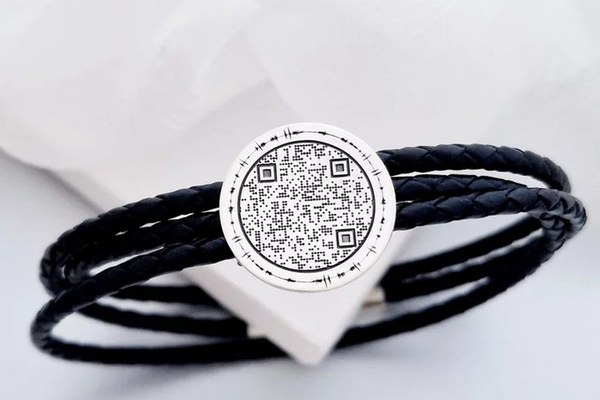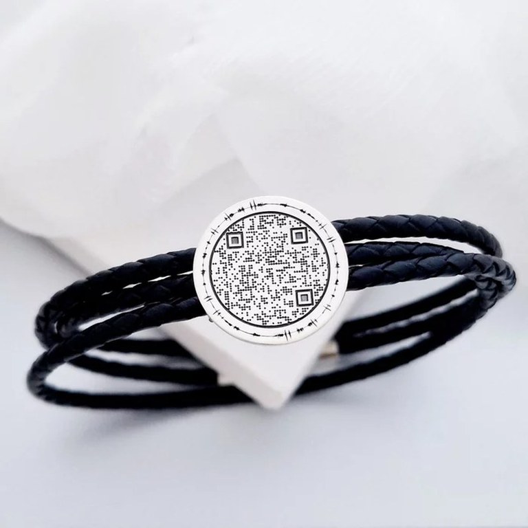 Bratara Iubire transmisa - Banut 20 mm cu amprenta vocala si Qr Code - Argint 925 - Piele impletita