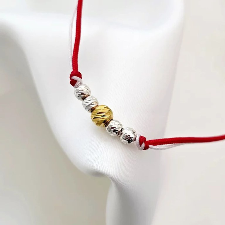Bratara Martisor - 5 Bilute Simetrie - Snur combinat Rosu&Alb Această brățară Mărțișor cu 5 biluțe simetrice este un simbol al primăverii, realizată din Argint 925 și Argint 925 placat cu Aur Galben 18K, perfect echilibrate pe snurul combinat roșu și alb. Designul său elegant adaugă un plus de rafinament oricărei ținute, iar combinația de metale prețioase garantează o durabilitate excepțională. Un cadou inspirat pentru a celebra tradițiile și momentele speciale din viața ta. Adaugă această brățară elegantă în colecția ta sau dăruiește-o cuiva special din viața ta! Caracteristici produs: Material: Argint 925 si snur reglabil Dimensiuni: 4 bilute de 3 mm si o biluta de 4 mm Decorare: 4 bilute din Argint 925 si o biluta din Argint 925 placat cu Aur Galben 18K Greutate: Aproximativ 0.36 grame Procesul de productie Chic Bijoux: Aceasta bijuterie personalizata este realizata de la zero pentru fiecare comanda in parte. Dupa plasarea si confirmarea comenzii, incepe procesul ei de creatie: Realizare Design -> Taiere/Personalizare -> Finisare manuala -> Polish Final -> Ambalare -> Livrare! Datorita procesului de productie si a personalizarii bijuteriei dupa propria dorinta, gramajul final al produsului poate varia . Pe site este afisat gramajul obtinut prin cantarirea produsului din pozele de prezentare. Pretul include, pe langa costul gramului de Argint 925 , intregul proces de productie si personalizare, garantand un produs unic si special, creat doar pentru tine. De ce sa alegi Chic Bijoux? Fiecare bijuterie Chic Bijoux este realizata cu pasiune, respectand cele mai inalte standarde de calitate: Bijuterii unice realizate manual, personalizate pentru fiecare client. Ambalaj premium, perfect pentru a fi oferit cadou. Garantia calitatii: din 2010 producem bijuterii din metale pretioase de cea mai bună calitate folosind tehnologie de ultimă generație și finisare manuală. Dupa plasarea comenzii, vei fi contactat de un reprezentant al echipei Chic Bijoux pentru toate detaliile necesare personalizarii produsului si a ne asigura ca produsul final corespunde asteptarilor tale. Toate produsele din Argint 925 comercializate de Chic Bijoux sunt marcate cu titlul Argintului · 925.