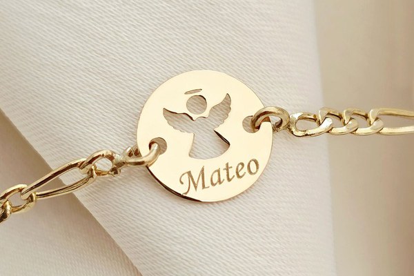 Pastrati-va ingerul pazitor mereu aproape cu acesta frumosa bratara personalizata. Lasati ingerul sa va protejeze si problemele sa le alunge. Ofera un cadou atent pentru a reaminti unui prieten sau membru al familiei ca sunt iubiti si protejati. DESPRE PRODUS: Banutul este creat din Aur Galben 14K. Dimensiunea banutului este de 10 mm. Gravarea unui nume sau a unei date este gratuita. Bijuteria va ajunge la tine intr-un saculet elegant Chic Bjoux gata de a fi daruita, impreuna cu certificatul de garantie, care atesta autenticitatea si caracteristicile metalului pretios. Gramaj aproximativ AUR 14K (585): 1.1 grame Grosime tabla: 0.35 mm Aceasta bijuterie personalizata este realizata de la zero pentru fiecare comanda in parte. Dupa plasarea si confirmarea comenzii incepe procesul ei de creatie: Realizare Design -> Taiere/Personalizare -> Finisare manuala -> Polish Final -> Ambalare -> Livrare! Pretul produsului include pe langa costul gramului de Aur 14K si tot procesul de mai sus, necesar pentru realizarea unui produs cu adevarat special pentru tine. Datorita procesului de productie si a personalizarii bijuteriei dupa propria dorinta gramajul final al produsului poate fi diferit. Din acest motiv pe site este afisat gramajul obtinut prin catarirea produsului realizat in pozele de prezentare. Dupa plasarea comenzii va va contacta o colega din echipa Chic Bijoux pentru toate detaliile necesare personalizarii produsului. Toate produsele din Aur comercializate de Chic Bijoux sunt marcate cu titlul Aurului de 14K · 585 ·