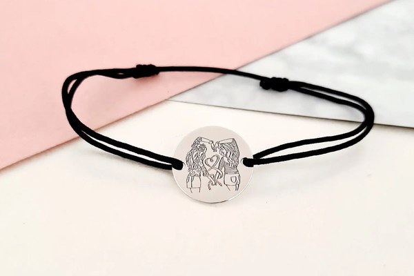 Bratara personalizata - Banut de 15 mm - Model gravat legatura surori/prietene - Argint 925 - snur reglabil