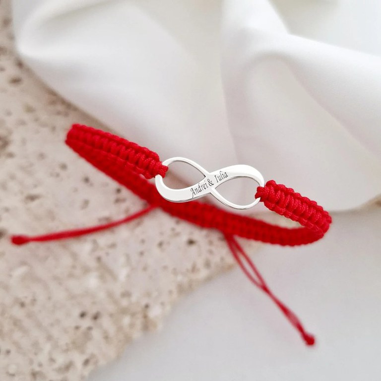 Iubirea si prietenia pot dura o viata cu bratara noastra infinit personalizata cu un mesaj la alegere. Alege un cadou semnificativ pentru o persoana speciala, astfel incat sa stie ca dragostea ii va fi alaturi vesnic. Pentru ca bijuteria ta sa fie unica iti oferim gratuit posibilitatea de a grava un nume, o data speciala sau un mesaj scurt pe banda lata din mijlocul infinitului. DESPRE PRODUS: Pandantul este creat din Argint 925. Dimensiunea lui este de 20 mm. Bratara este creata dintr-un snur din matase vegetala, marime reglabila, potrivit pe orice incheietura. Gravarea unui nume, a unei date sau a unui mesaj scurt pe banda din mijlocul infinitului este gratuita. Gramaj aproximativ ARGINT 925: 0.39 grame Aceasta bijuterie personalizata este realizata de la zero pentru fiecare comanda in parte. Dupa plasarea si confirmarea comenzii incepe procesul ei de creatie: Realizare Design -> Taiere/Personalizare -> Finisare manuala -> Polish Final -> Ambalare -> Livrare! Datorita procesului de productie si a personalizarii bijuteriei dupa propria dorinta gramajul final al produsului poate fi diferit. Din acest motiv pe site este afisat gramajul obtinut prin catarirea produsului realizat in pozele de prezentare. Pretul produsului include pe langa costul gramului de Argint 925 si tot procesul de mai sus, necesar pentru realizarea unui produs cu adevarat special pentru tine. Toate produsele din Argint 925 comercializate de Chic Bijoux sunt marcate cu titlul Argintului· 925 · Dupa plasarea comenzii veti fi contactat de o colega din echipa Chic Bijoux pentru toate detaliile necesare personalizarii produsului.