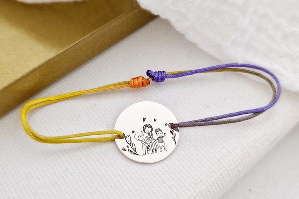 Bratara personalizata - Mama si 2 baieti - Banut de 15 mm - Argint 925 - snur reglabil