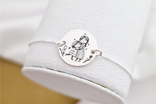 Un cadou deosebit, o amintire pretioasa impartasita cu mama, fiica sau nepoata ta. Bratara este creata din Argint 925 prin taiere si gravare laser, avand diametrul banutului de 15 mm si vine atasata de un lantisor din Argint 925. Dimensiunea totala a bratarii este de 16,5 cm,dar are o prelungire de 5 cm unde se poate regla. Un cadou deosebit! Gramaj aproximativ ARGINT 925:1.8 grame Aceasta bijuterie personalizata este realizata de la zero pentru fiecare comanda in parte. Dupa plasarea si confirmarea comenzii incepe procesul ei de creatie: Realizare Design -> Taiere/Personalizare -> Finisare manuala -> Polish Final -> Ambalare -> Livrare! Datorita procesului de productie si a personalizarii bijuteriei dupa propria dorinta gramajul final al produsului poate fi diferit. Din acest motiv pe site este afisat gramajul obtinut prin catarirea produsului realizat in pozele de prezentare. Pretul produsului include pe langa costul gramului de Argint 925 si tot procesul de mai sus, necesar pentru realizarea unui produs cu adevarat special pentru tine. Toate produsele din Argint 925 comercializate de Chic Bijoux sunt marcate cu titlul Argintului· 925 ·