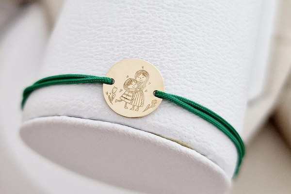 Un cadou deosebit, o amintire pretioasa impartasita cu mama, fiica sau nepoata ta. DESPRE PRODUS: Banutul este creat din Aur Galben 14K prin taiere si gravare laser Diametrul banutului este de 12 mm Bratara este creata dintr-un snur din matase vegetala, marime reglabila, potrivit pe orice incheietura Gravarea unui nume, a unei date pe verso este gratuita Gramaj aproximativ AUR 14K (585): 0.5 grame Aceasta bijuterie personalizata este realizata de la zero pentru fiecare comanda in parte. Dupa plasarea si confirmarea comenzii incepe procesul ei de creatie: Realizare Design -> Taiere/Personalizare -> Finisare manuala -> Polish Final -> Ambalare -> Livrare! Datorita procesului de productie si a personalizarii bijuteriei dupa propria dorinta gramajul final al produsului poate fi diferit. Din acest motiv pe site este afisat gramajul obtinut prin catarirea produsului realizat in pozele de prezentare. Pretul produsului include pe langa costul gramului de Aur 14K si tot procesul de mai sus, necesar pentru realizarea unui produs cu adevarat special pentru tine. Dupa plasarea comenzii veti fi contactat de o colega din echipa Chic Bijoux pentru toate detaliile necesare personalizarii produsului. Toate produsele din Aur comercializate de Chic Bijoux sunt marcate cu titlul Aurului de 14K · 585 ·
