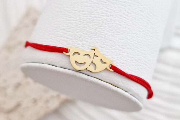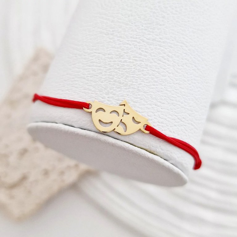 Bratara personalizata - Masti de teatru - Argint placat cu Aur galben - snur reglabil, diverse culori