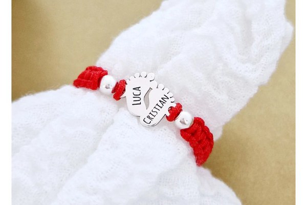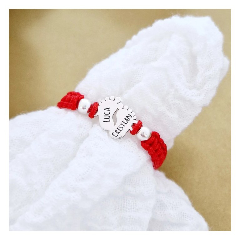 Ureaza-i bun venit unui nou-nascut in lume cu bijuterii delicate si atent create. Indiferent daca va intampinati propriul copil sau sarbatoriti botezul nepotului sau a finutului, marcheaza aceste momente speciale cu o amintire gravata, o bratara special creata pentru micuta minune. Bratara poate fi personalizata cu initiale, nume, data nasterii sau un simbol special. In plus, aceasta este ajustabila, astfel incat sa ii fie buna marimea pe masura ce copilul creste. Gramaj aproximativ ARGINT 925: 0.65 grame Aceasta bijuterie personalizata este realizata de la zero pentru fiecare comanda in parte. Dupa plasarea si confirmarea comenzii incepe procesul ei de creatie: Realizare Design -> Taiere/Personalizare -> Finisare manuala -> Polish Final -> Ambalare -> Livrare! Datorita procesului de productie si a personalizarii bijuteriei dupa propria dorinta gramajul final al produsului poate fi diferit. Din acest motiv pe site este afisat gramajul obtinut prin catarirea produsului realizat in pozele de prezentare. Pretul produsului include pe langa costul gramului de Argint 925 si tot procesul de mai sus, necesar pentru realizarea unui produs cu adevarat special pentru tine. Toate produsele din Argint 925 comercializate de Chic Bijoux sunt marcate cu titlul Argintului· 925 · DESPRE PRODUS: Piciorusele sunt creata din Argint 925 si au d imensiunea de 10x11 mm. Alaturi de pandantul picioruse sunt atasate 2 bilute din Argint 925 de 4 mm fiecare. Bratara este impletita si creata dintr-un snur din matase vegetala. Pentru o potrivire cat mai perfecta a bratarii te rugam sa ne transmiti dimesniunea in casuta specifica. Poti alege sa gravezi o data, un nume sau initiala pe fiecare piciorus. Bijuteria va ajunge la tine intr-un saculet elegant din catifea, impreuna cu certificatul de calitate ce atesta autenticitatea materialelor folosite. Dupa plasarea comenzii veti fi contactat de o colega din echipa Chic Bijoux pentru toate detaliile necesare personalizarii produsului.