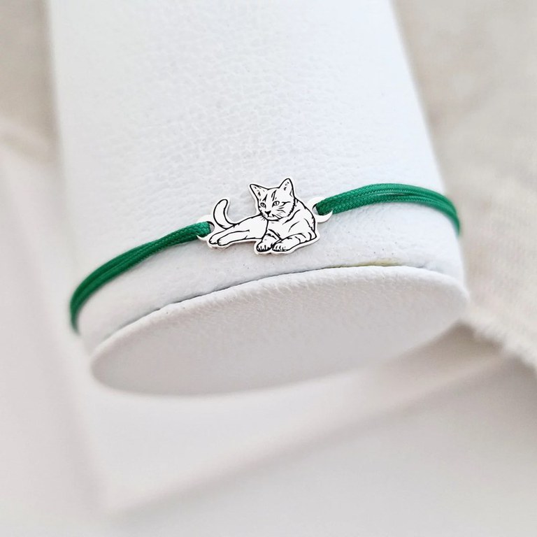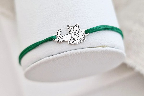 Bratara pisica intinsa - Argint 925, snur reglabil