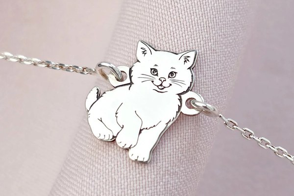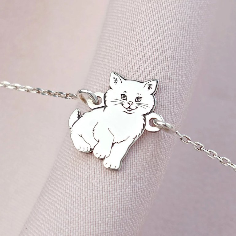 Bratara pisica pufoasa cu lantisor - Argint 925