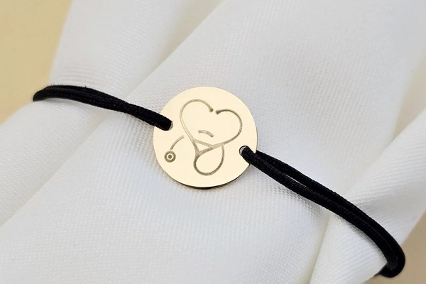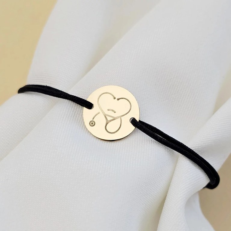 Bratara Stetoscop sub forma unei inimi - Banut 12 mm - Aur Galben 9K - Snur reglabil, diverse culori