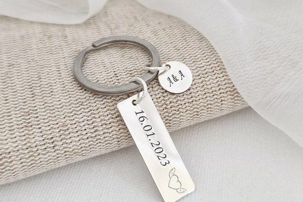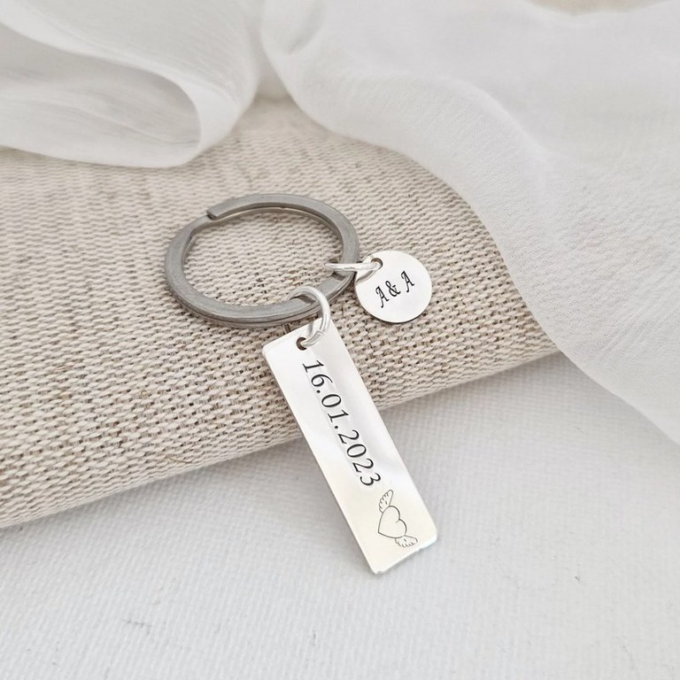 Breloc personalizat - Placuta si banut - Argint 925 - inel otel inoxidabil