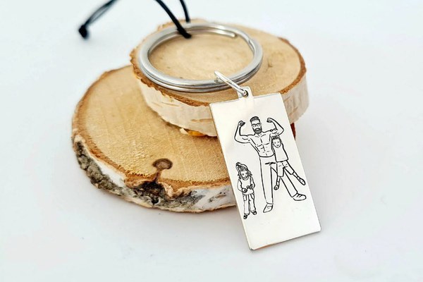 Breloc personalizat - Super Dad - Tata de fata si baiat - Argint 925 - inel otel inoxidabil