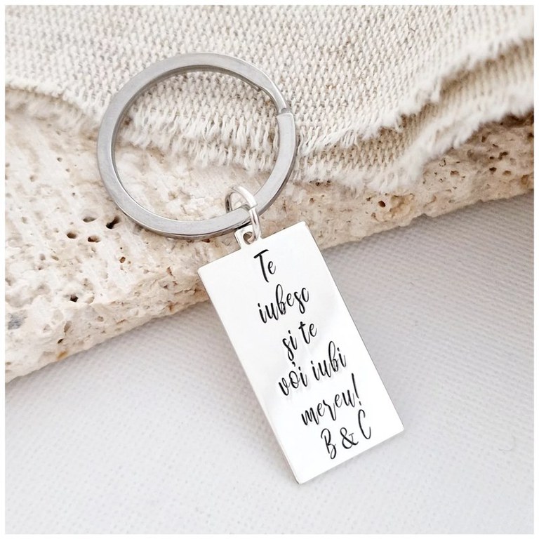 Breloc placuta gravata cu text- Argint 925 - inel otel inoxidabil