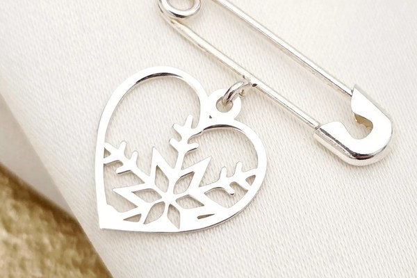 Brosa Ac de siguranta - Pandantiv Inima cu fulg de nea decupat– Argint 925