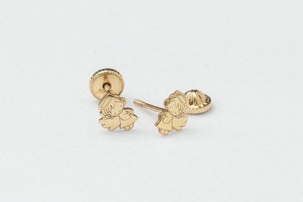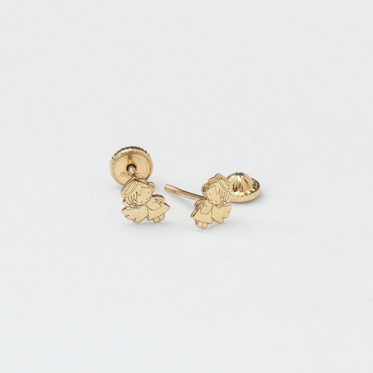 Cercei copii/bebe - Model ingeras coronita - Aur Galben 9K - Inchizatoare sigura si confortabila cu filet