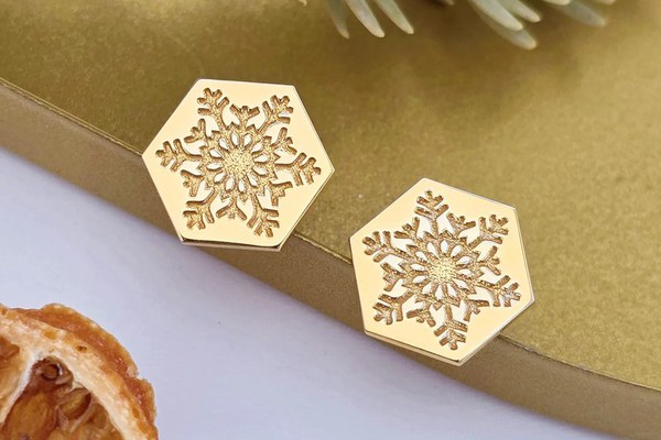 Cercei Craciun - Model Hexagon - Fulg de zapada - Argint 925 placat cu Aur galben de 18K - inchidere surub