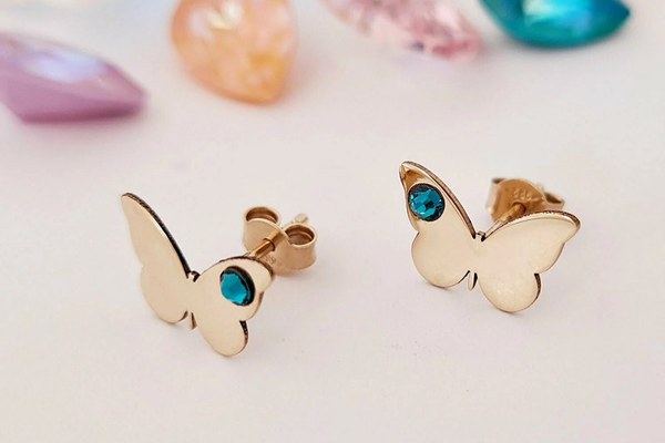 Cercei fluture - model simplu cu cristal Swarovski - Aur Galben 14K - inchidere surub