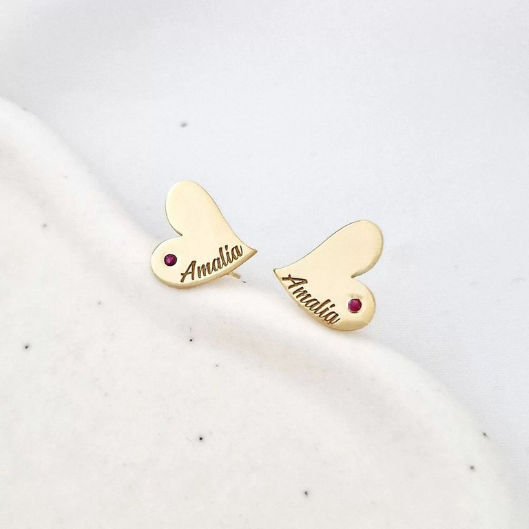 Cercei Inima personalizati - Argint 925 Placat cu Aur galben 18K - decorati cu rubin