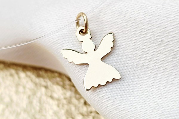 Choker Aur Galben 14K - Pandantiv Ingeras - Lant silicon cu inchizatoare carabina