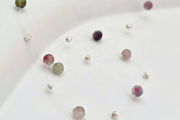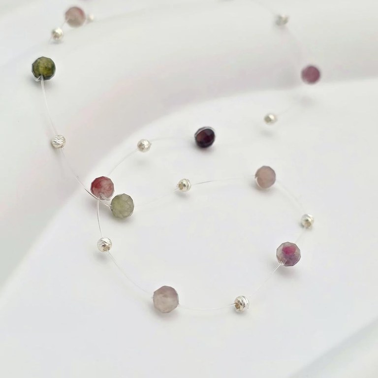 Choker Drop cu pietre turmalina fatetata si bilute din Argint 925