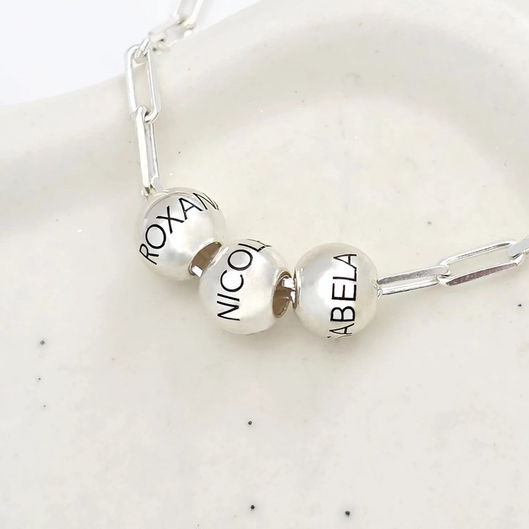 Colier Legaturi Pretioase - 3 bilute personalizate cu nume - Lantisor cu zale dreptunghiulare - Argint 925 Colierul „Legături Prețioase” transformă fiecare biluță într-un simbol al iubirii și al amintirilor de neuitat. Fiecare dintre cele 3 biluțe poate fi personalizată cu un nume special, oferind un omagiu discret celor mai dragi persoane din viața ta. Realizat din Argint 925 și completat cu un lanț cu zale dreptunghiulare elegant, acest colier este expresia subtilă a legăturilor autentice. Creează-ți propriul colier „Legături Prețioase” și poartă cu tine cele mai importante nume – aproape de inimă, zi de zi. Caracteristici produs: Material: Argint 925 Dimesiune biluta: 7 mm Decorare: Nume personalizate Greutate: Aproximativ 6.99 grame Procesul de productie Chic Bijoux: Aceasta bijuterie personalizata este realizata de la zero pentru fiecare comanda in parte. Dupa plasarea si confirmarea comenzii, incepe procesul ei de creatie: Realizare Design -> Taiere/Personalizare -> Finisare manuala -> Polish Final -> Ambalare -> Livrare! Datorita procesului de productie si a personalizarii bijuteriei dupa propria dorinta, gramajul final al produsului poate varia . Pe site este afisat gramajul obtinut prin cantarirea produsului din pozele de prezentare. Pretul include, pe langa costul gramului de Argint 925 , intregul proces de productie si personalizare, garantand un produs unic si special, creat doar pentru tine. De ce sa alegi Chic Bijoux? Fiecare bijuterie Chic Bijoux este realizata cu pasiune, respectand cele mai inalte standarde de calitate: Bijuterii unice realizate manual, personalizate pentru fiecare client. Ambalaj premium, perfect pentru a fi oferit cadou. Garantia calitatii: din 2010 producem bijuterii din metale pretioase de cea mai bună calitate folosind tehnologie de ultimă generație și finisare manuală. Dupa plasarea comenzii, vei fi contactat de un reprezentant al echipei Chic Bijoux pentru toate detaliile necesare personalizarii produsului si a ne asigura ca produsul final corespunde asteptarilor tale.