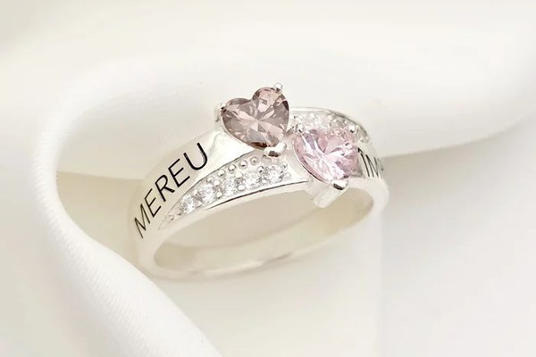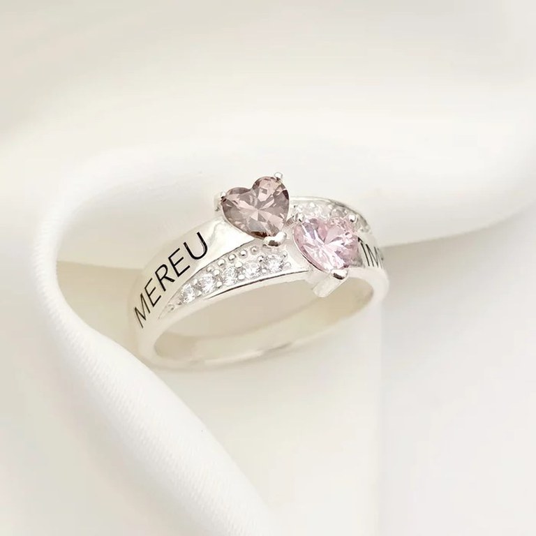 Inel Destine Unite - 2 nume si Cristale Zirconia - Argint 925