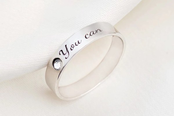Un must-have din cutia de bijuterii este inelul personalizat cu un nume la alegere, un mesaj scurt sau un cuvant semnificativ. Despre produs: Inelul este creat din Argint 925. Latimea lui este de 4 mm. Bijuteria poate fi placata cu Aur Galben sau Roz de 18k. Inelul este creat pe marime. Te rugam sa introduci dimensiunea dorita in casuta corespunzatoare Inelul va ajunge la tine intr-o cutiuta de bijuterii eleganta, impreuna cu certificatul de calitate ce atesta autenticitatea materialelor folosite. Cristalul Swarovski poate fi ales in functie de culoarea preferata sau dupa luna nasterii. Culorile cristalelor Swarovski sunt asociate pietrelor norocoase ale lunii de nastere. Descopera piatra lunii in care te-ai nascut in poza explicativa. Gramaj aproximativ ARGINT 925: 2.25 grame Aceasta bijuterie personalizata este realizata de la zero pentru fiecare comanda in parte. Dupa plasarea si confirmarea comenzii incepe procesul ei de creatie: Realizare Design -> Taiere/Personalizare -> Finisare manuala -> Polish Final -> Ambalare -> Livrare! Datorita procesului de productie si a personalizarii bijuteriei dupa propria dorinta gramajul final al produsului poate fi diferit. Din acest motiv pe site este afisat gramajul obtinut prin catarirea produsului realizat in pozele de prezentare. Pretul produsului include pe langa costul gramului de Argint 925 si tot procesul de mai sus, necesar pentru realizarea unui produs cu adevarat special pentru tine. Toate produsele din Argint 925 comercializate de Chic Bijoux sunt marcate cu titlul Argintului· 925 · *** Daca nu stii care e marimea ta sau a persoanei careia doresti sa ii faci cadou inelul, articolul Cum afli corect marimea inelului tau? de pe blogul Chic Bijoux iti vine in ajutor. Dupa plasarea comenzii veti fi contactat de o colega din echipa Chic Bijoux pentru toate detaliile necesare personalizarii produsului.