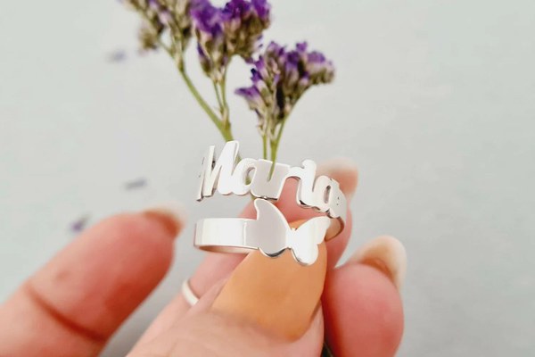 Inel personalizat cu nume decupat si simbol fluture - Argint 925