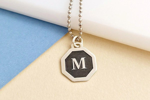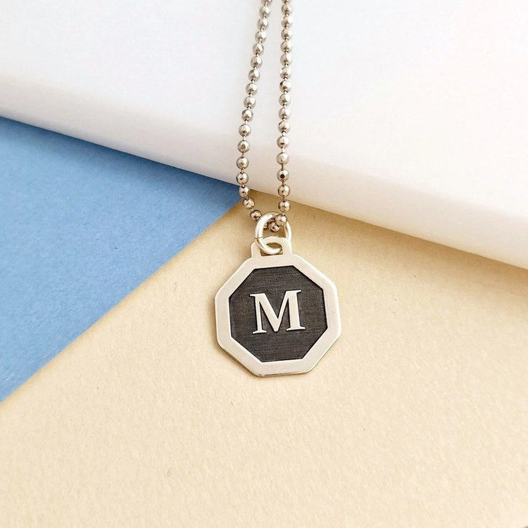 Lant barbatesc - Model octogon rotunjit - Initiala in relief - Argint 925